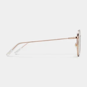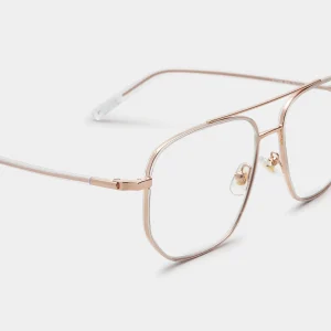Γυαλιά οράσεως BOLON 7158 B30, με μεταλλικό χρυσό σκελετό και κοκάλινους διάφανούς βραχίονες.