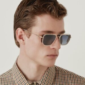Τα γυαλιά ηλίου SIMON 6561 8 είναι ένας μεταλλικός σκελετός σε χρυσό χρώμα με γκρι φακούς, διάφανες λεπτομέρειες και ιδιαίτερο σχέδιο στα πλαϊνά του σκελετού. Χειροποίητος με 100% προστασία από τον ήλιο.
