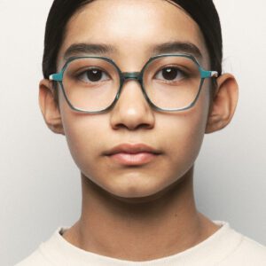 Γυαλιά οράσεως KALEOS MARDIGAL, σε πολύγωνο κοκάλινο σκελετό σε τιρκουαζ αποχρώσεις.